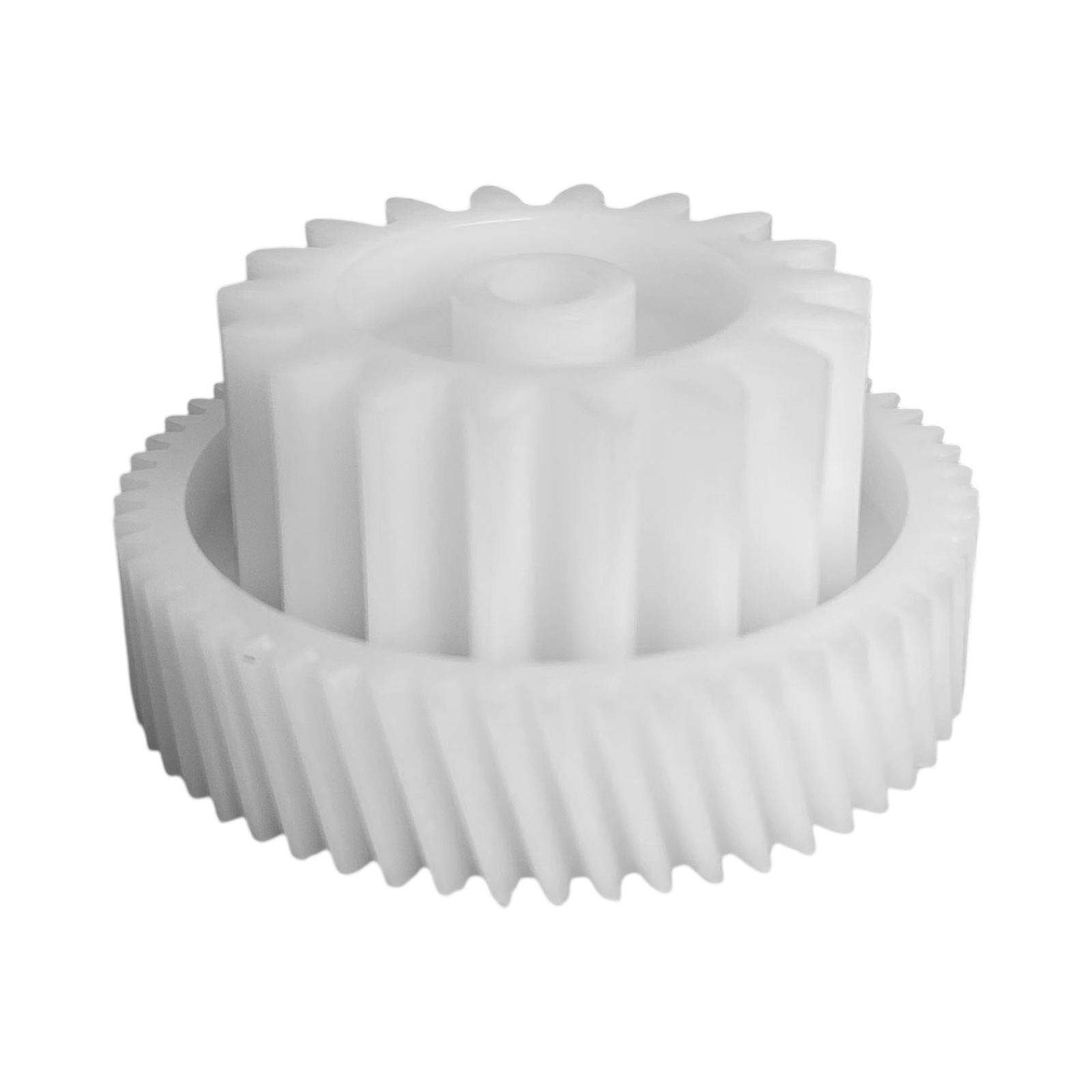 Шестерня изготовлена из пластика, устойчивого к механическим нагрузкам и перепадам температуры. Имеет двойной диаметр 35 и 47 мм, высоту 23 мм, 18 прямых и 56 зубьев с косым наклоном. Такая конструкция гарантирует надежное сцепление и равномерную передачу вращения. Пластиковая шестерня сокращает риск перегрева двигателя и продлевает срок службы редуктора мясорубки.Перед заменой важно убедиться в корректной совместимости шестерни с конкретной моделью Polaris. Очистите посадочное место, нанесите пищевую смазку на вал и зубья, затем аккуратно зафиксируйте шестерню в правильном положении. Избегайте попадания крупных костей, чтобы не повредить пластиковые элементы.