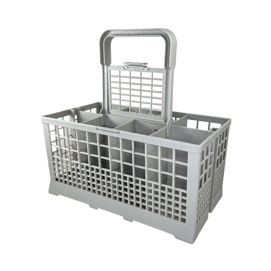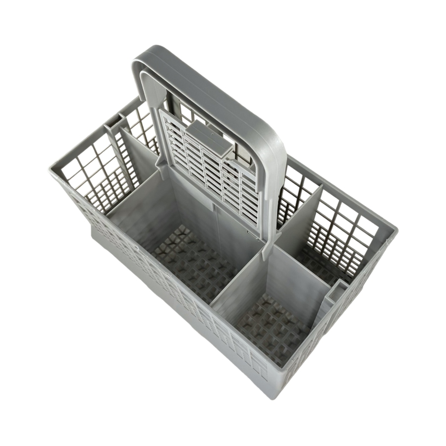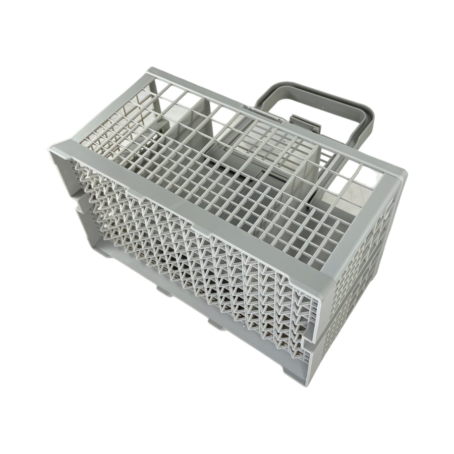 Корзина для мытья столовых приборов для посудомоечной машины Bosch 621320 имеет размеры 24 см длиной, 14 см шириной и высотой 12,5 см без ручки, а с учетом ручки - 24,5 см. Её ручка съемная, что облегчает загрузку и выгрузку приборов. Цвет пластика серый. Корзина спроектирована для эффективной укладки и мытья столовых приборов, обеспечивая оптимальное использование пространства внутри посудомоечной машины.