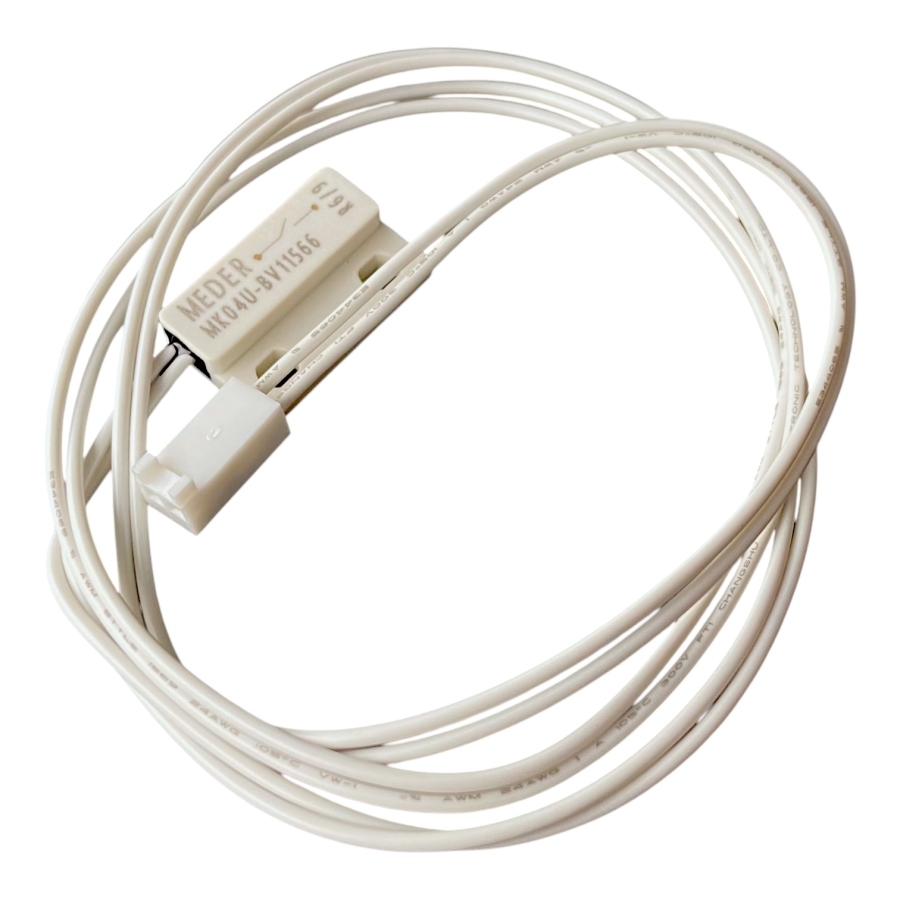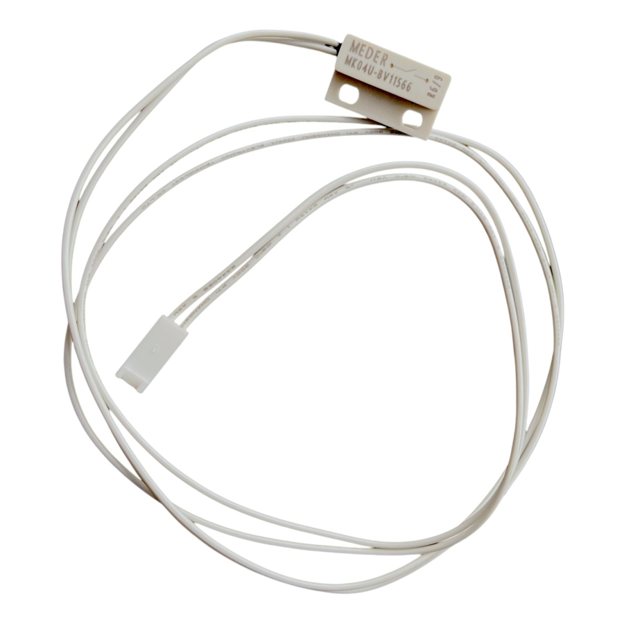 Маркировка на корпусе: MEDER MK04U-BV11566. Общая длина датчика составляет 685 мм, а длина провода с контактом — 660 мм. Датчик выполнен из металла и пластика, цвет — белый.