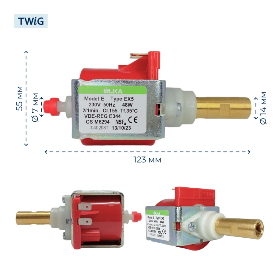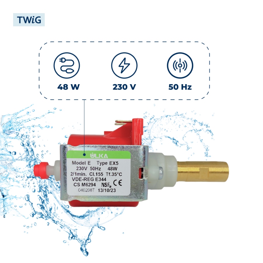 Модель насоса Ulka EX5 подходит для различных моделей кофемашин, что делает его универсальным решением для замены. Стабильное давление, обеспечиваемое насосом, гарантирует насыщенный вкус и аромат приготовленного кофе.