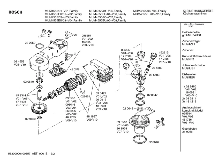 Запчасти для Bosch MUM4555EU/03 (58300000100857_aet_000_e_02)