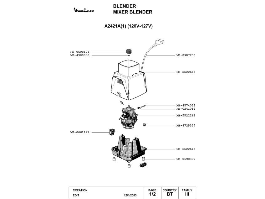 Запчасти для блендера Moulinex A2421A(1) (A2421A(1)_2)