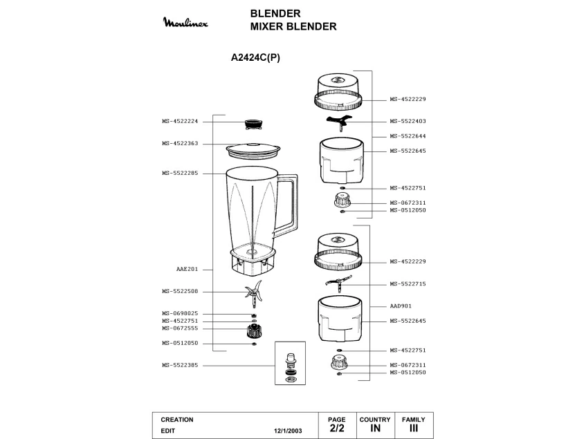 Запчасти для блендера Moulinex A2424C(P) (A2424C(P)_2)