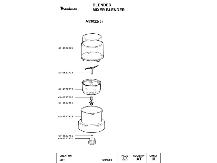 Запчасти для блендера Moulinex A53022(3) (A53022(3)_2)