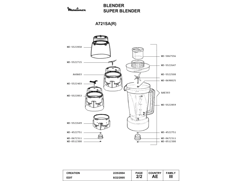 Запчасти для блендера Moulinex A721SA(R) (A721SA(R)_2)