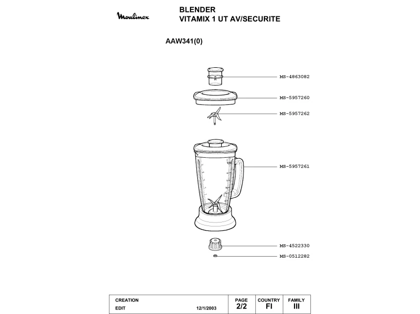 Запчасти для блендера Moulinex AAW341(0) (AAW341(0)_2)