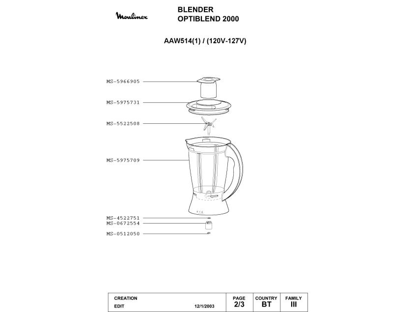 Запчасти для блендера Moulinex AAW514(1) (AAW514(1)_2)