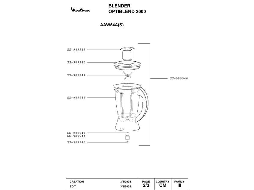 Запчасти для блендера Moulinex AAW54A(S) (AAW54A(S)_2)