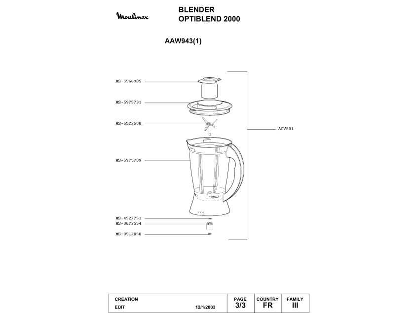 Запчасти для блендера Moulinex AAW943(1) (AAW943(1)_3)