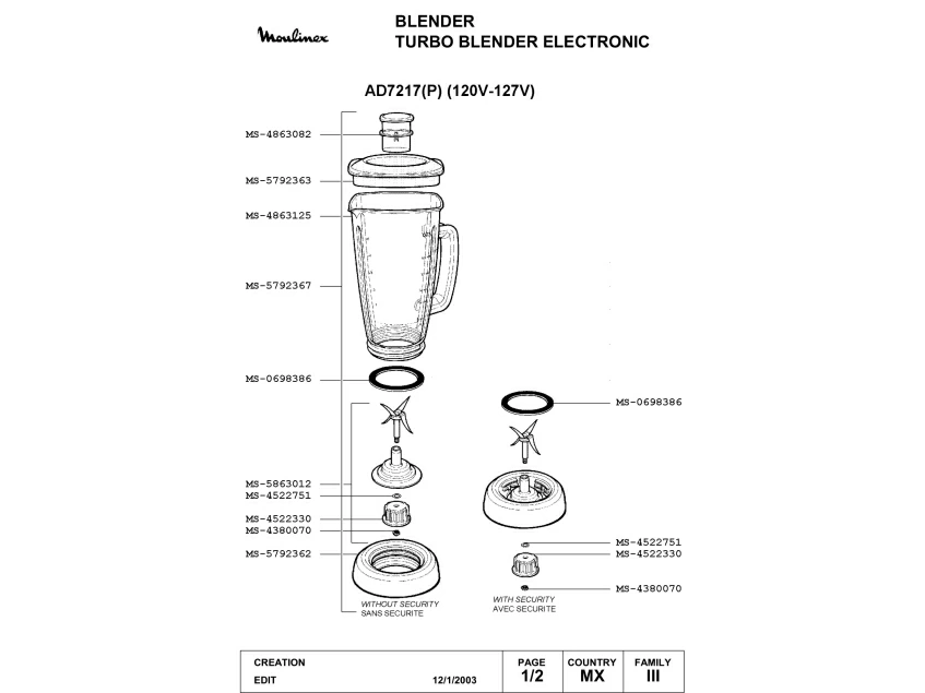 Запчасти для блендера Moulinex AD7217(P) (AD7217(P)_1)
