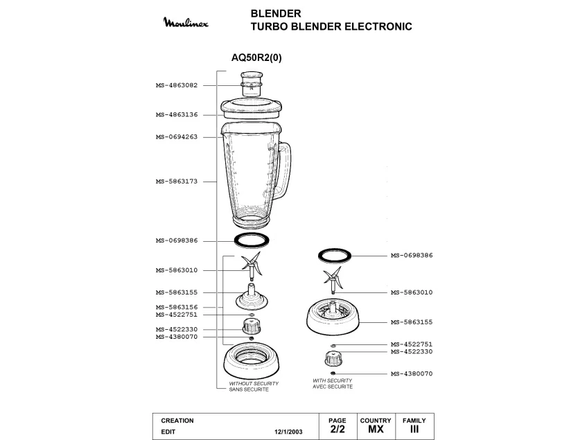 Запчасти для блендера Moulinex AQ50R2(0) (AQ50R2(0)_2)