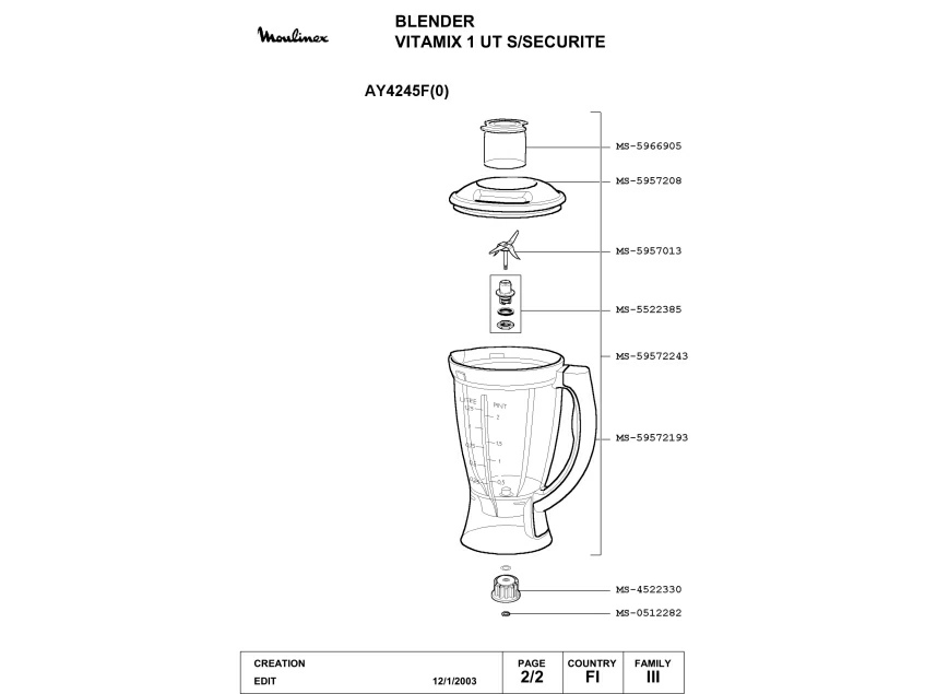 Запчасти для блендера Moulinex AY4245F(0) (AY4245F(0)_2)
