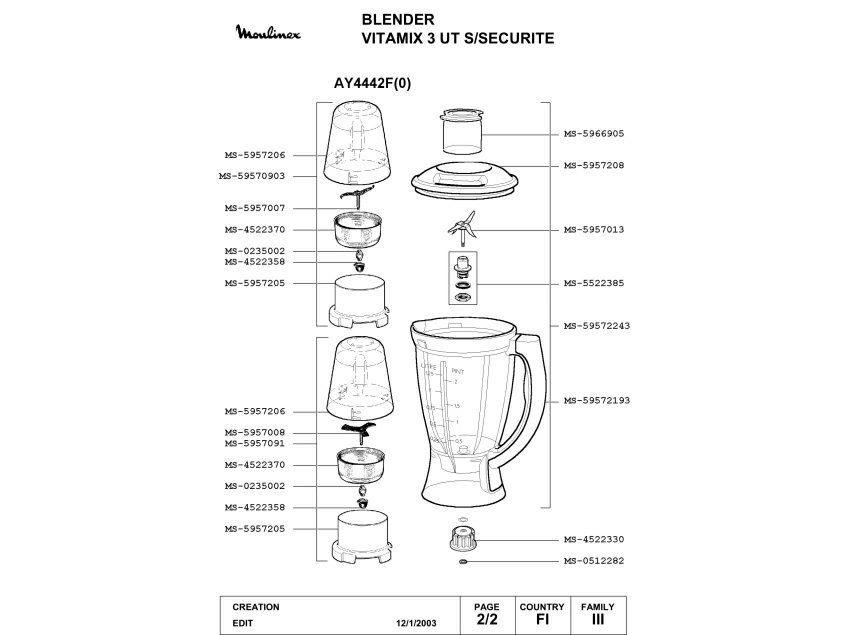 Запчасти для блендера Moulinex AY4442F(0) (AY4442F(0)_2)