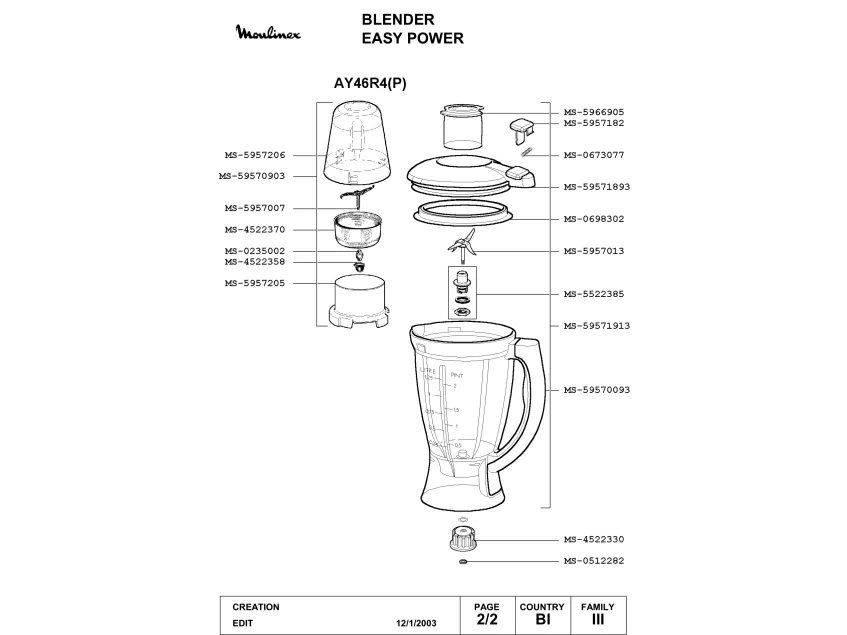 Запчасти для блендера Moulinex AY46R4(P) (AY46R4(P)_2)