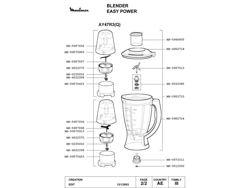 Запчасти для блендера Moulinex AY47R3(Q) (AY47R3(Q)_2)