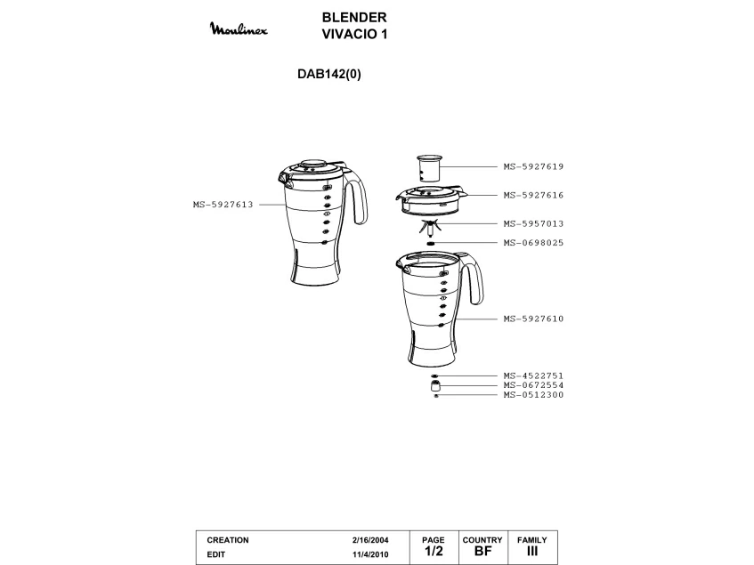 Запчасти для блендера Moulinex DAB142(0) (DAB142(0)_1)
