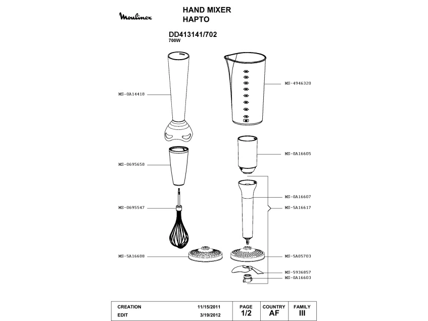Запчасти для блендера Moulinex DD413141/702 (DD413141-702_1)