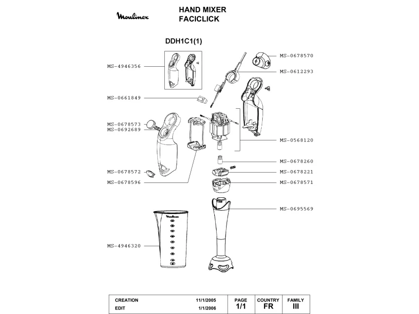 Запчасти для блендера Moulinex DDH1C1(1) (DDH1C1(1)_1)