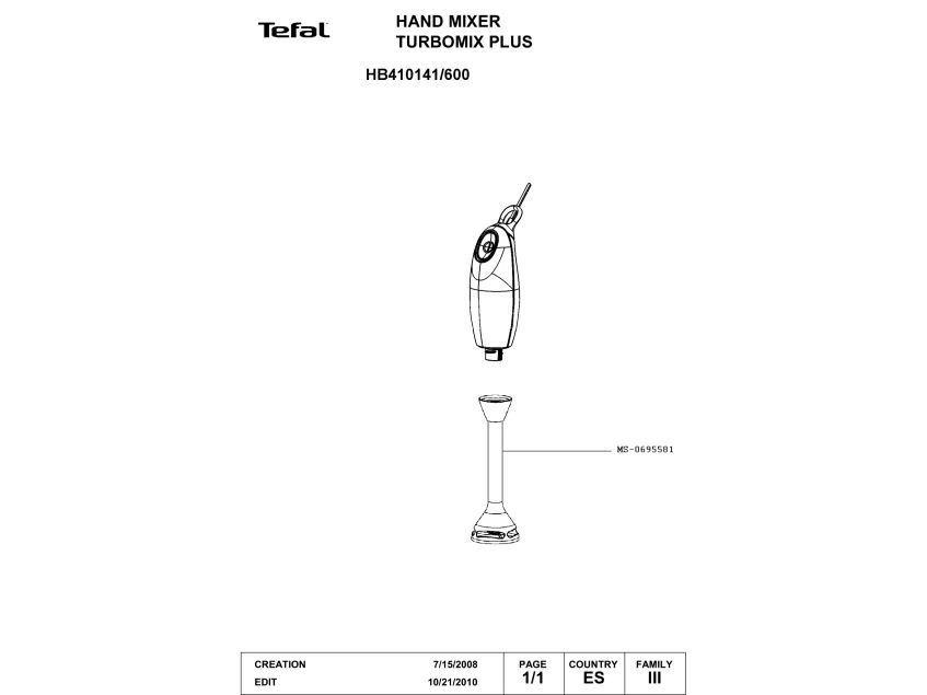 Запчасти для блендера Tefal HB410141/600 (HB410141-600)