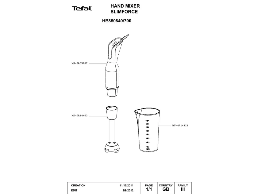 Запчасти для блендера Tefal HB850840/700 (HB850840-700)