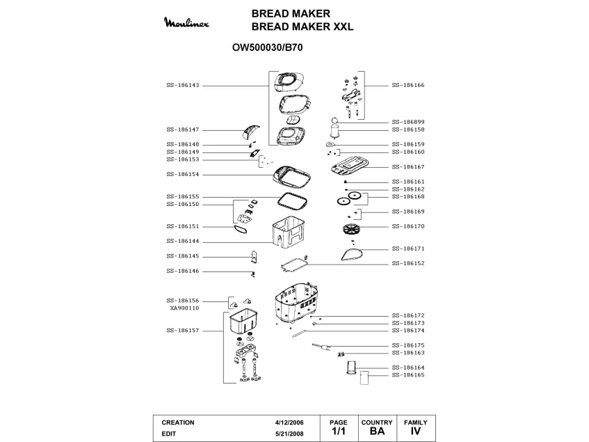 Запчасти для хлебопечки Moulinex OW500030/B70 (OW500030-B70-1)