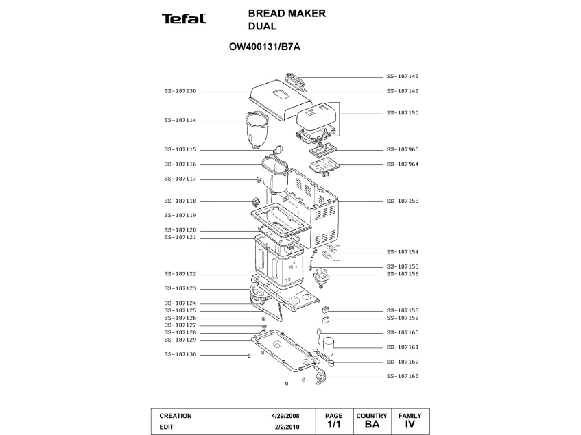 Запчасти для хлебопечки Tefal OW400131/B7A (OW400131-B7A)