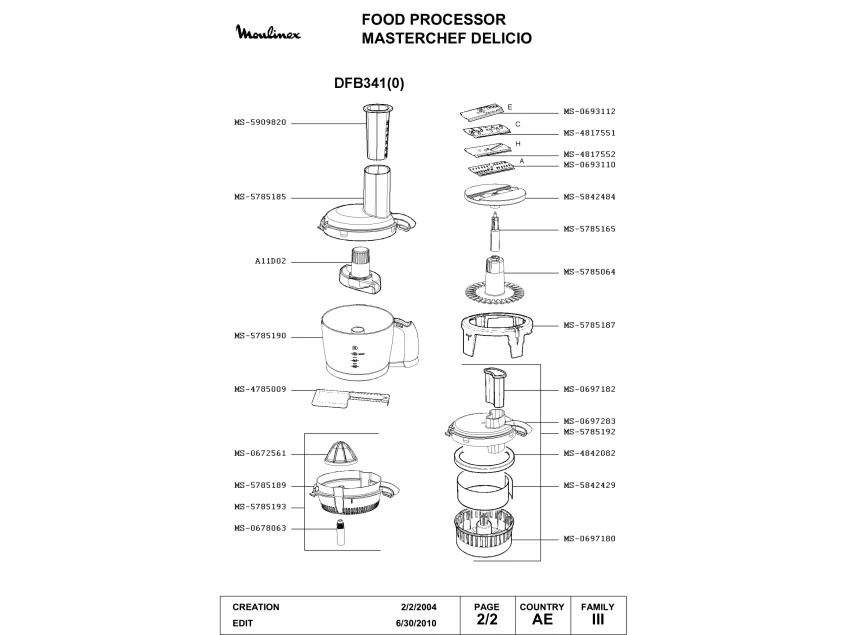 Запчасти для кухонного комбайна Moulinex DFB341(0) (DFB341(0)-2)