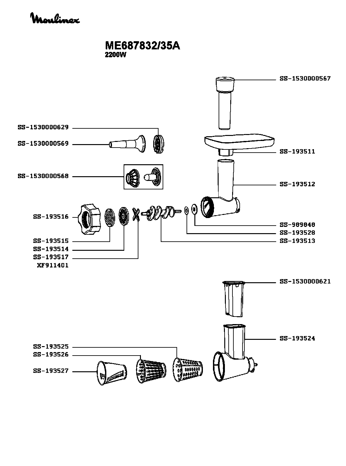 Запчасти для мясорубки Moulinex ME687832/35A