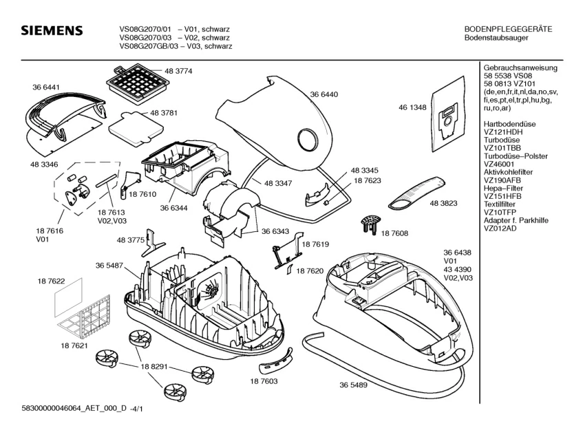 Запчасти для пылесоса Siemens VS08G2070/01 (58300000046064_aet_000_d_01)
